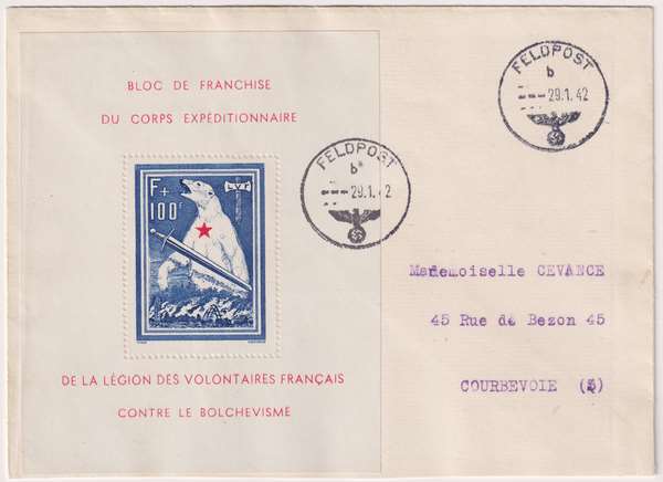 Timbres de France émis en 1941 Timbres émis en 1941 Bloc L'Ours de la Légion des Volontaires Français contre le bolchévisme sur lettre du 29-01-1942 Mots-clés associés timbres-poste Les timbres de FranceLes timbres des colonies françaises france 3 trimestre 2018Variétés sur Mariannes de Briat1 trimestre 20201 trimestre 20211 trimestre 20221 trimestre 2023Tarifs postaux au 01 janvier 20241 trimestre 2024Les timbres de FranceTarifs postaux au 01 janvier 2025Les timbres des colonies françaises Date de création : 2025.12.09 19:05 Catégorie : - Timbres de France Page lue 5 fois Prévisualiser... Imprimer...