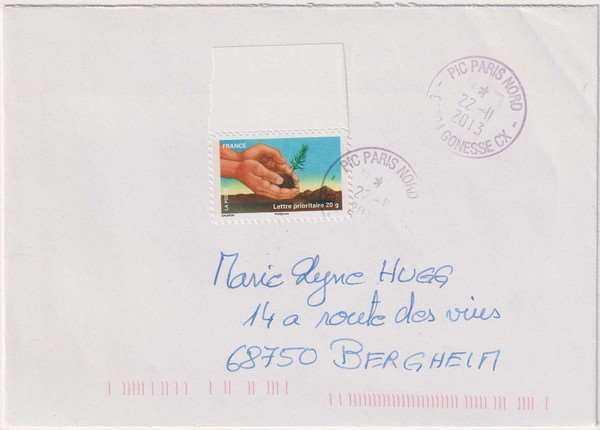 Lettre avec timbre le reboisement émission en feuille