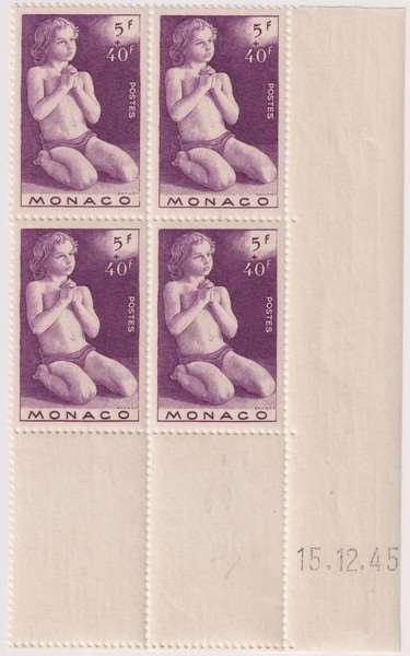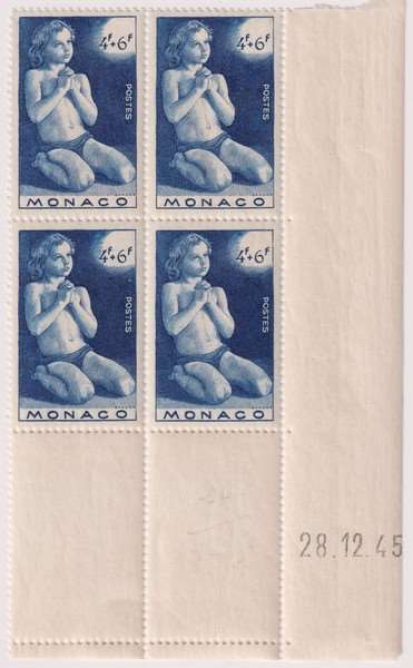 Les timbres de Monaco de 1946 Emissions de l'année 1946 Au profit des oeuvres charitables enfant en prière CD du 28.12.45 - CD du 21.12.45 -CD du 30.11.45 -CD du 15.12.45 - Oeuvres anti-tuberculeuses Date de création : 2026.02.11 17:11 Catégorie : - Timbres de Monaco Page lue 2 fois Prévisualiser... Imprimer...
